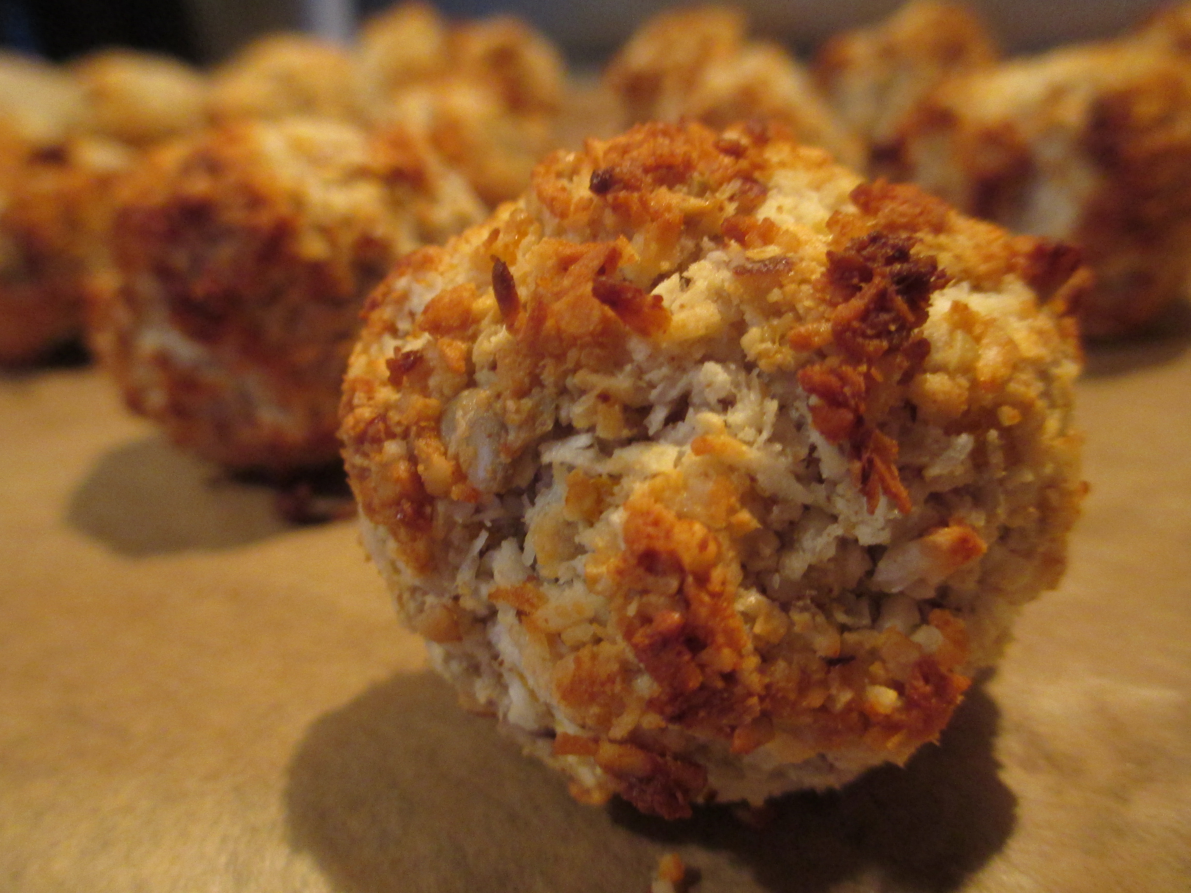 Buzz it all together in a food processor, shape into 15 balls, place on a baking paper lined tray, and bake for 15 minutes (mine were done at 12) at 180*C.