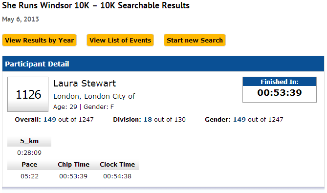 Well run, Laura – it was great to finally meet (even though it was brief – I totally under-estimated how far that ‘Long Walk’ would be!). I had my reservations about an all-female race too and some of the branding was a step too far (like EXPOtique!!) but overall it was a fantastic race and really well organised.