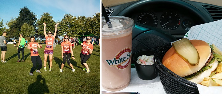 On my first day back in Vancouver I joined Julia, her sister Laura, and Carley in the Seek the Peak relay from the Pacific Ocean to the top of Grouse Mountain.  Just 4100ft in 16km for us to cover. We worked up an appetite and enjoyed legendary burgers, unlimited fries and chocolate milkshakes at the BEST BC restaurant ever.
