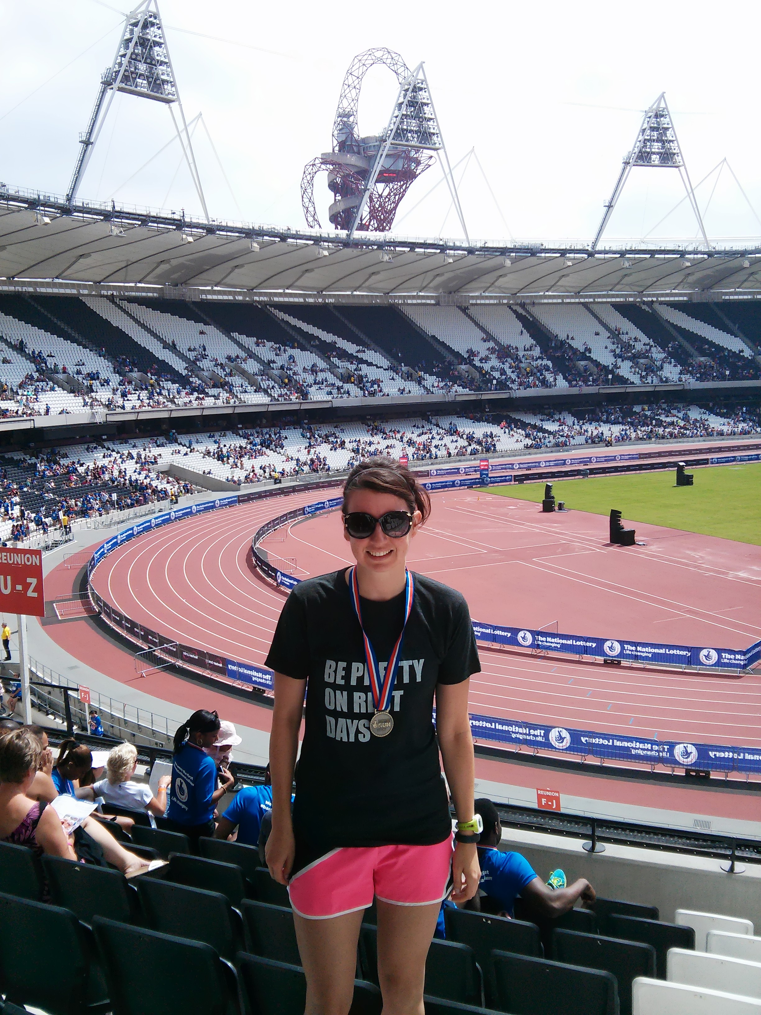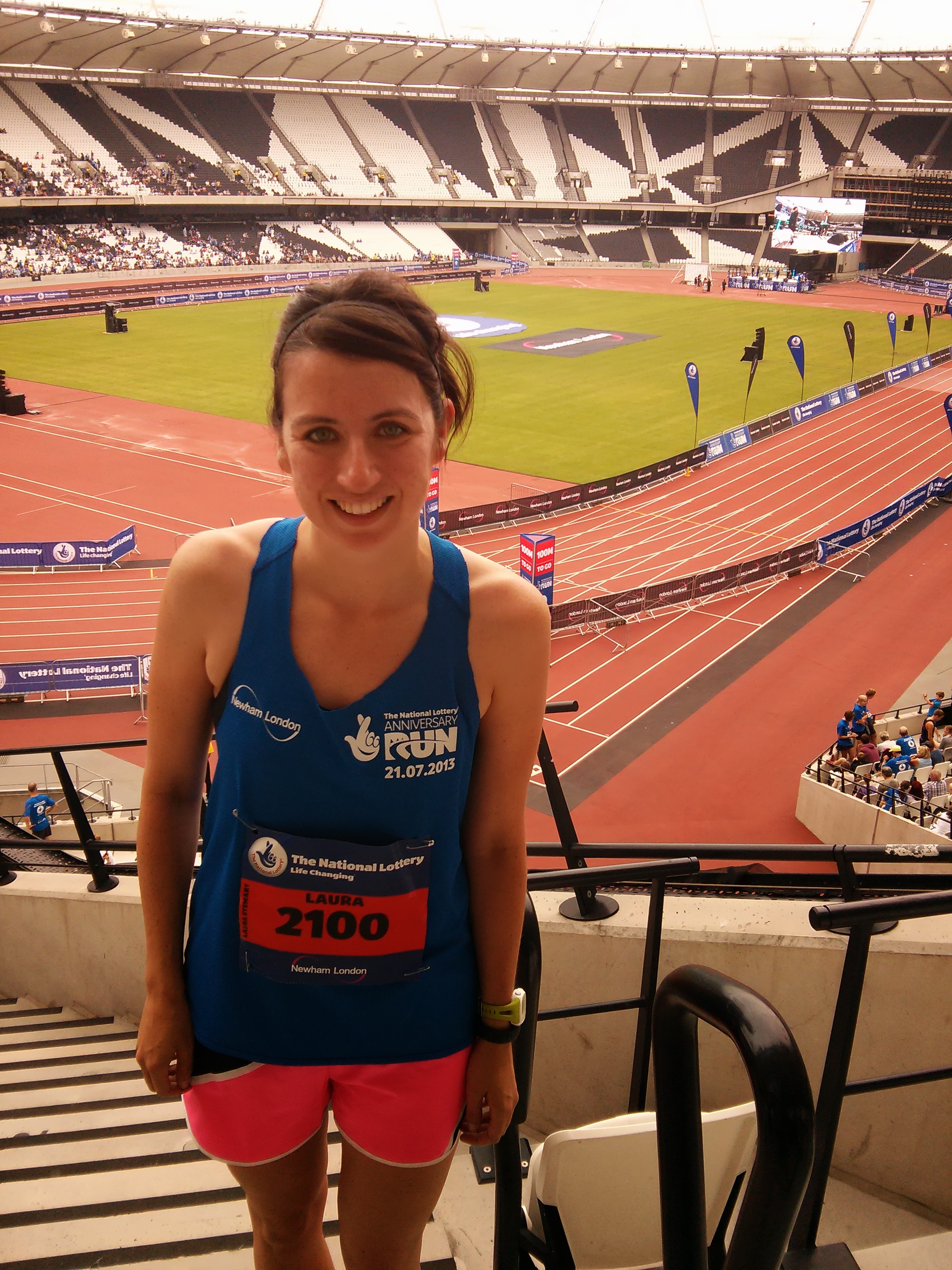 Along with 10,000 of our closest friends, Alex and I ran The National Lottery Anniversary Run at the Olympic Park.  It was the first time the stadium opened up to the public since the Olympic games, hence the #backtothestadium hashtag filling up your twitter feeds on Sunday.