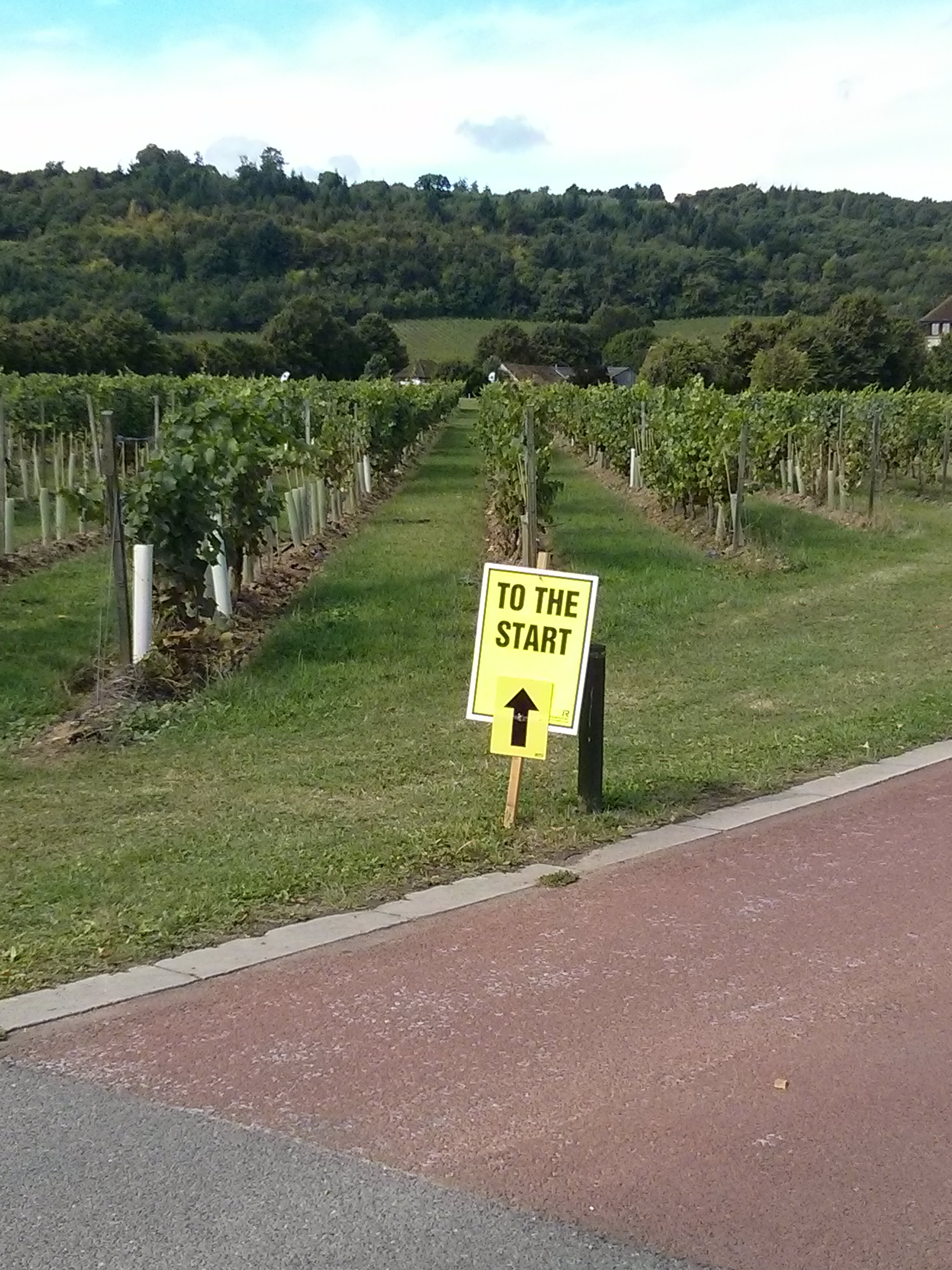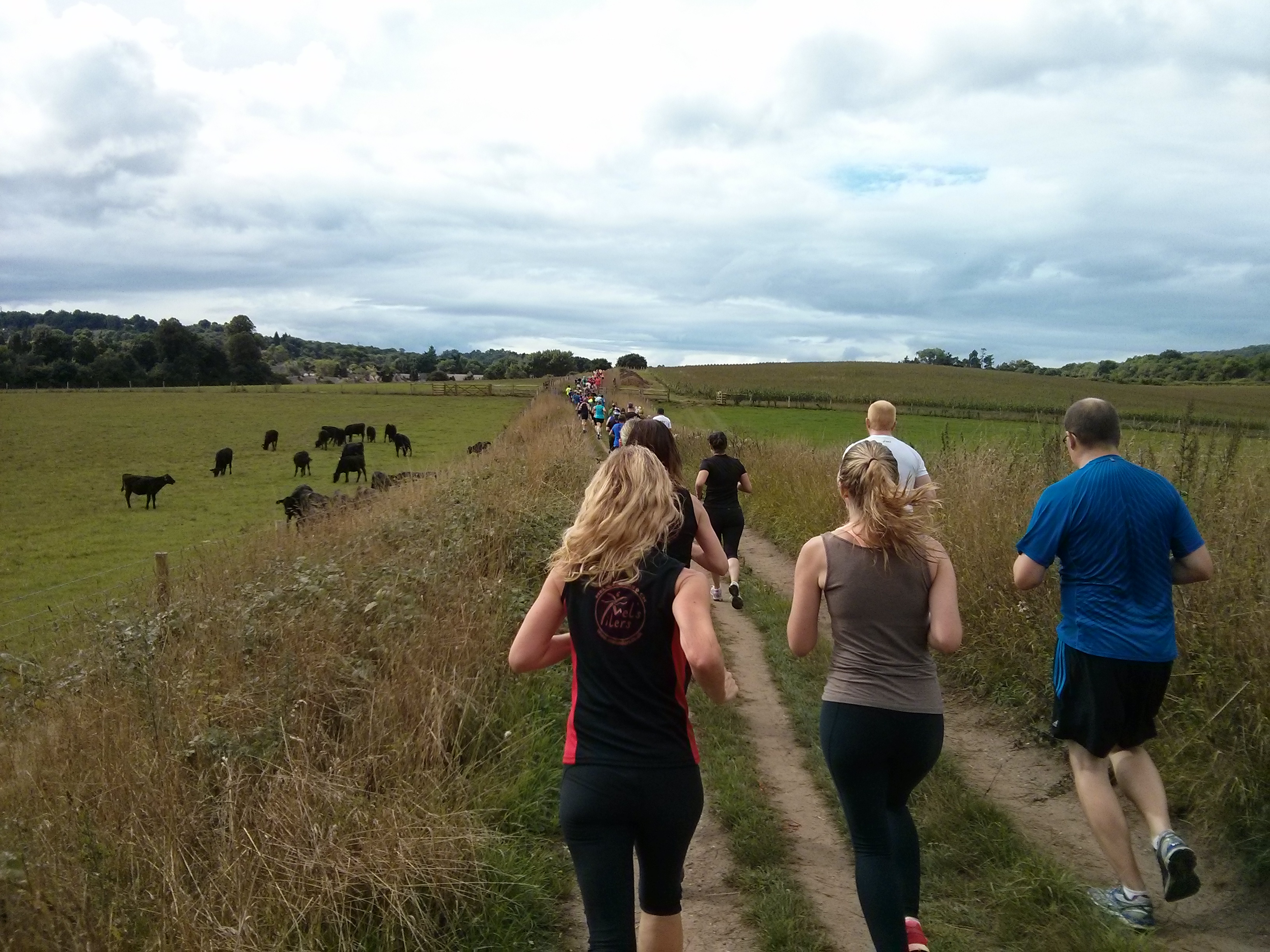 The race started with a 1 mile lap around the vineyard with baby-wines (grapes?) growing all around and we settled into a nice slow pace in the middle of the group. Everywhere you looked there were hills so it wasn’t long before we made our way up one and off the wine estate through a narrow path (some walking happened here as it was a teeny bottleneck) into Dorking. For about 2 miles the route followed a busy road so it wasn’t the most scenic, but it was over fast and we didn’t see any more road for the rest of the race.