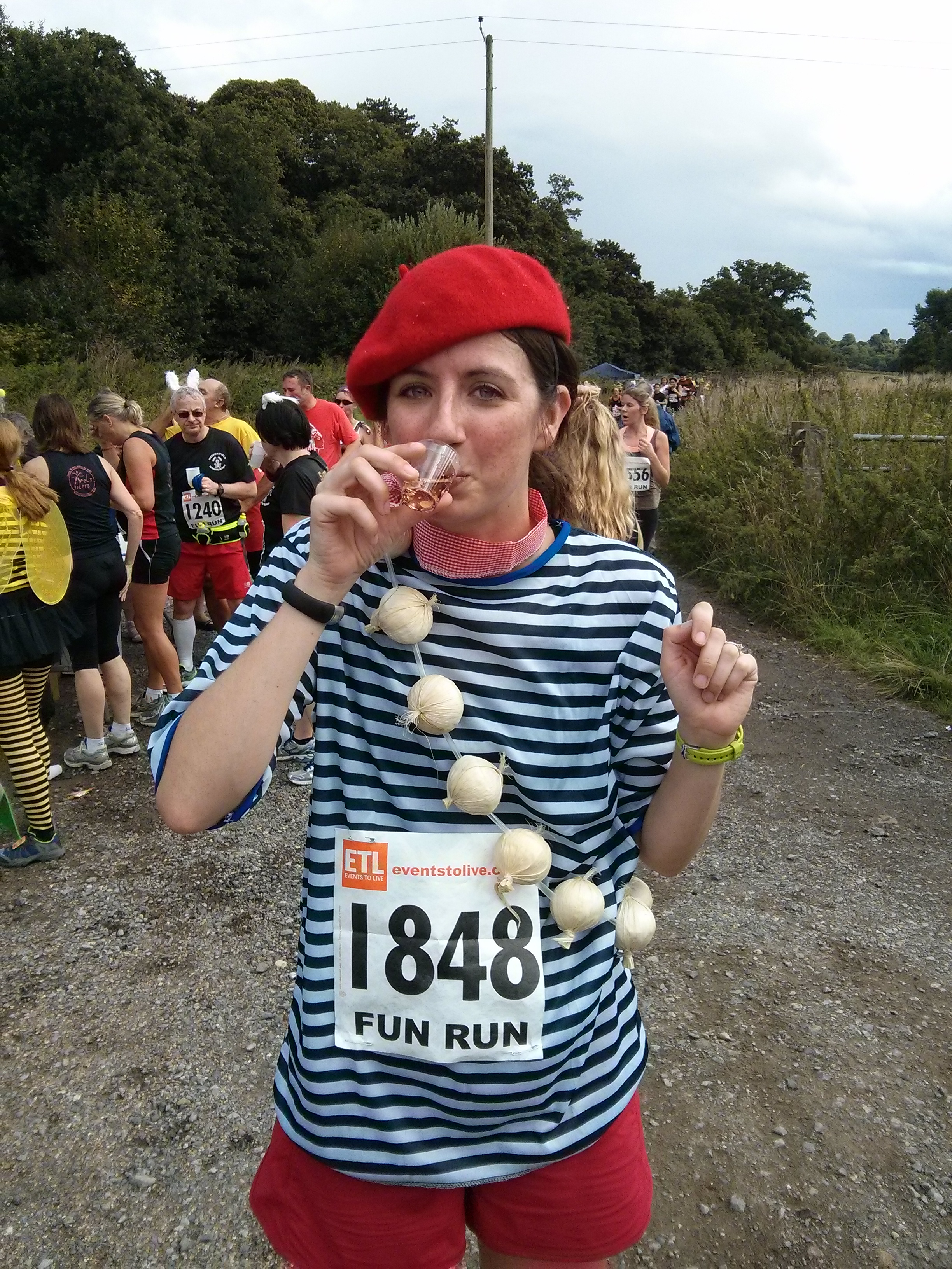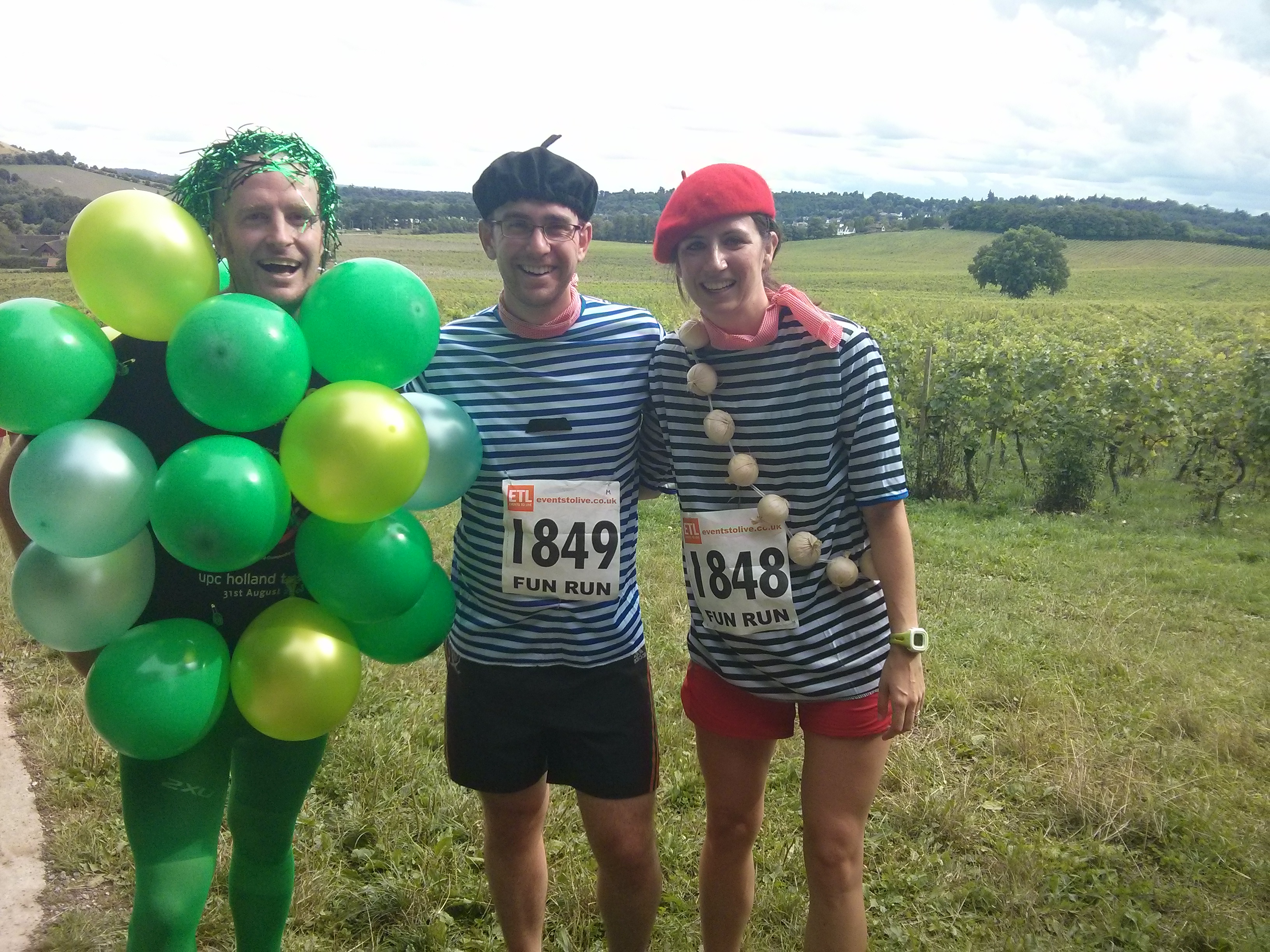 We chose to pick up our registration on the day, but if you live in Surrey you can pick it up on the Friday. When we arrived at 11am on race day there was zero line in registration and we flew through the bag drop. It couldn’t have been better organised. The vineyard was buzzing with runners getting (their costumes) ready and checking out the competition. I personally was worried about being overtaken by 12 beer bottles and the gang of Nanas.