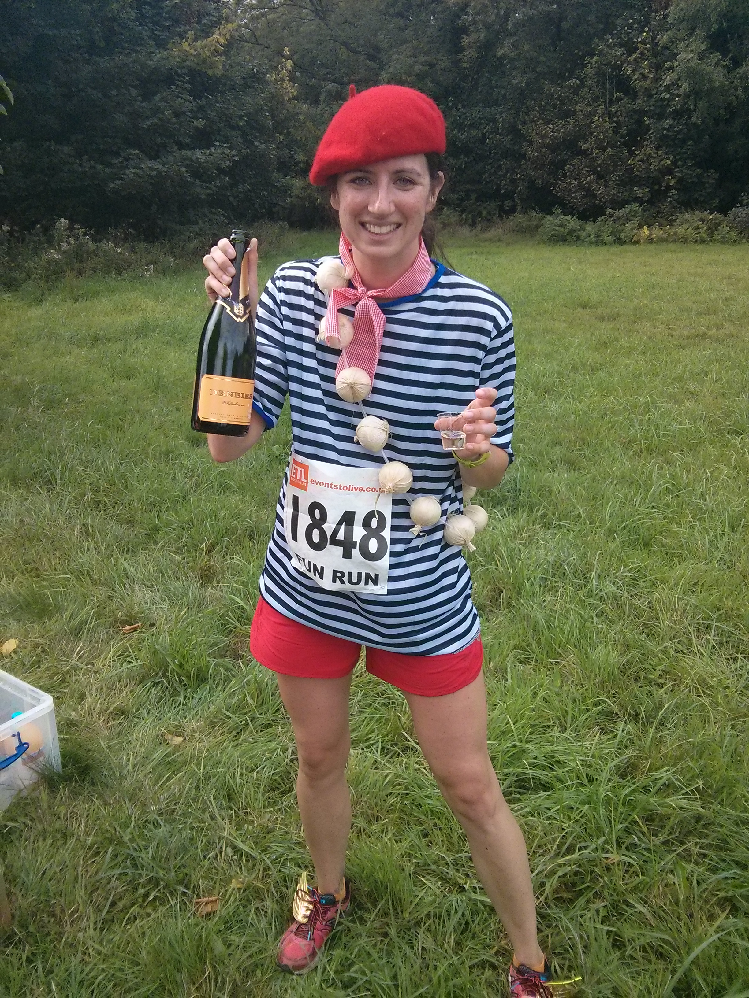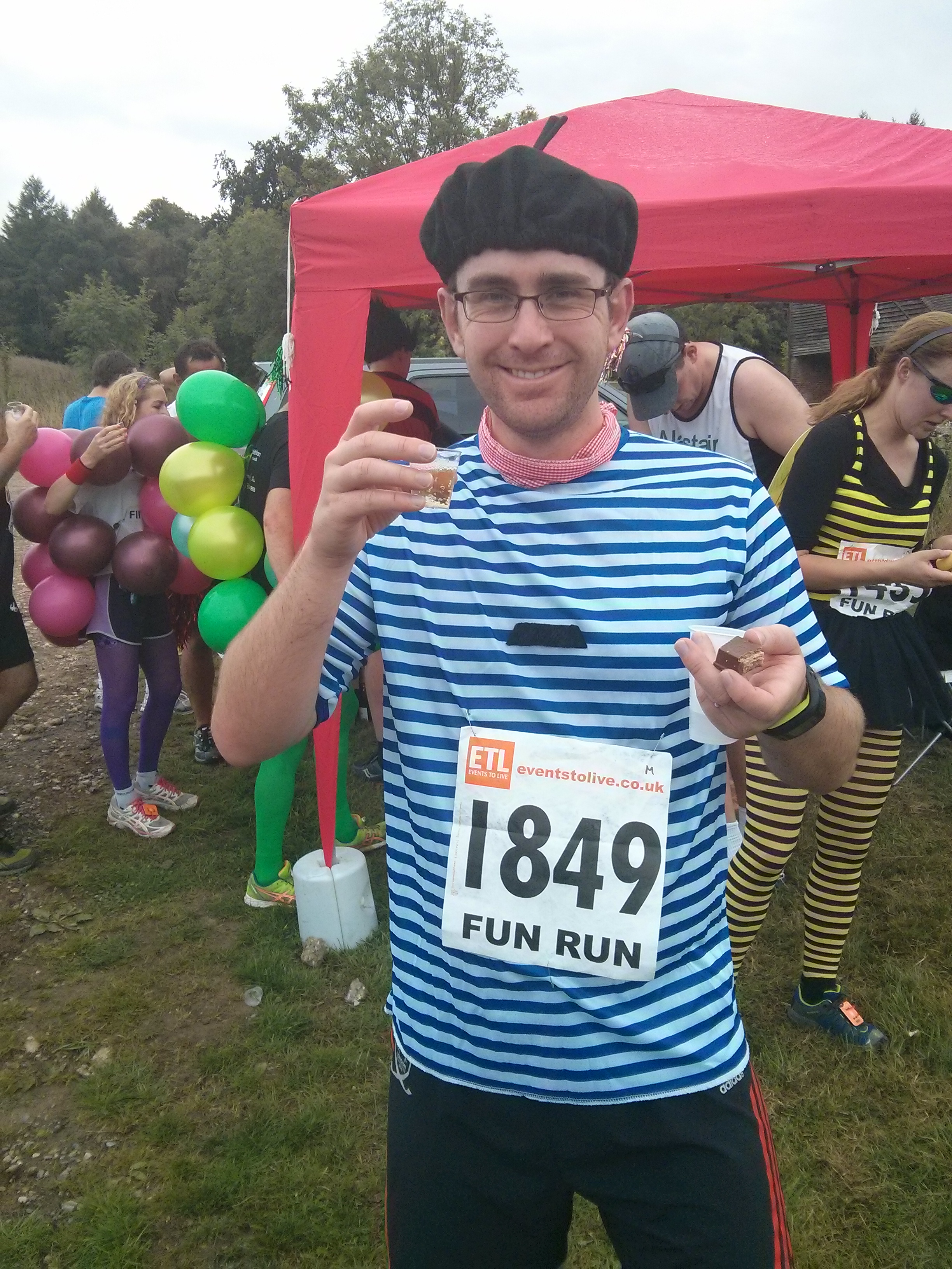 Alex of course beat me by 0:01 which I think brings us back to being tied over our lifetime or races, and I was placed in the Senior Ladies category. (These are the things that happen when you turn 30 that they DON’T warn you about.) There was one final station at the end with all the cakes, fruit and biscuits you could want, and some water and squash to transition you into real life where there isn’t wine every 2 miles.