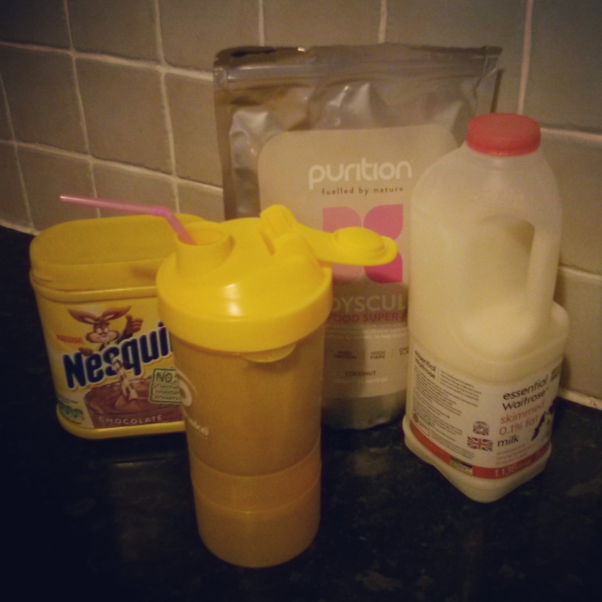 Friday morning called for a little treat, so I added Nesquick to the milk & Purition blend and it was my best creation yet. So delicious and tasted like a super-chocolate-milk shake. I’m sure you could find some less sugary chocolate mix, but I wasn’t fussed.