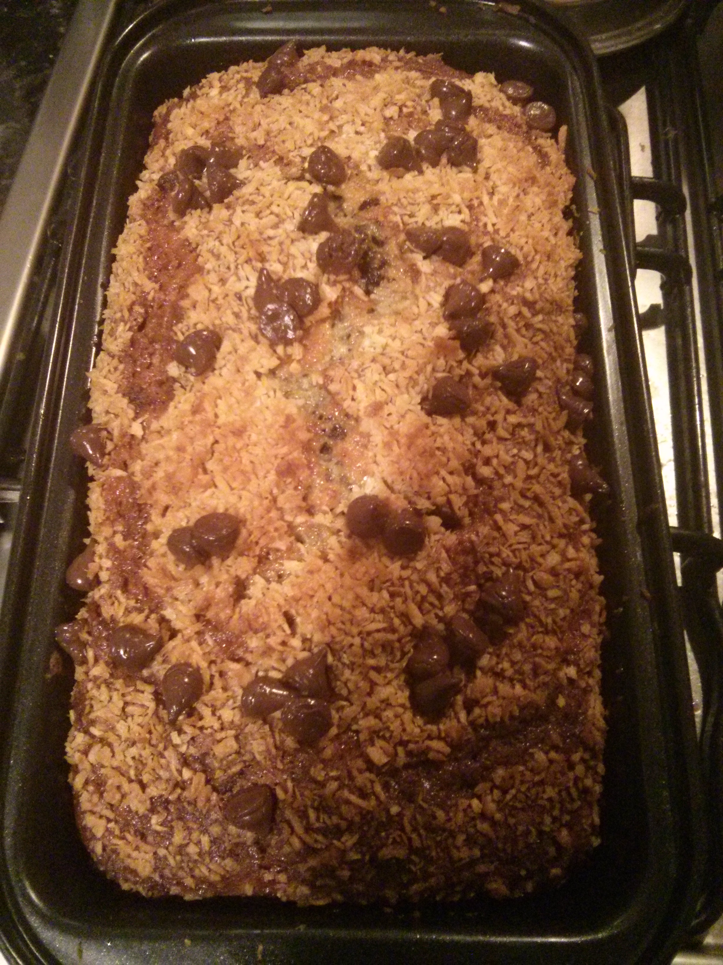 I used this recipe and obviously subbed OUT the nuts (stay out of my banana bread) and IN dark chocolate chips. I also added 1/4c of coconut mixed in just before they went in the oven. It adds a nice crisp to the top too.