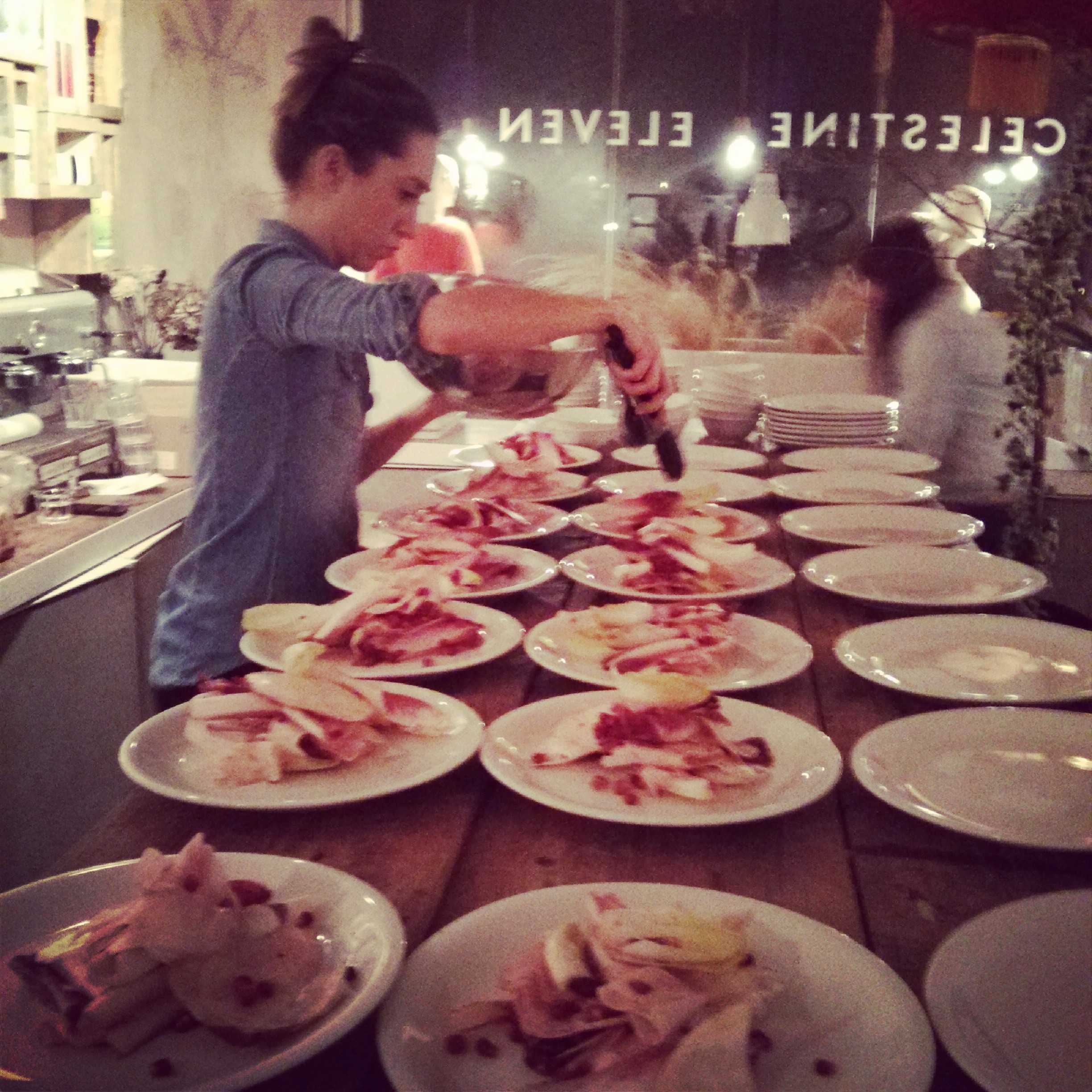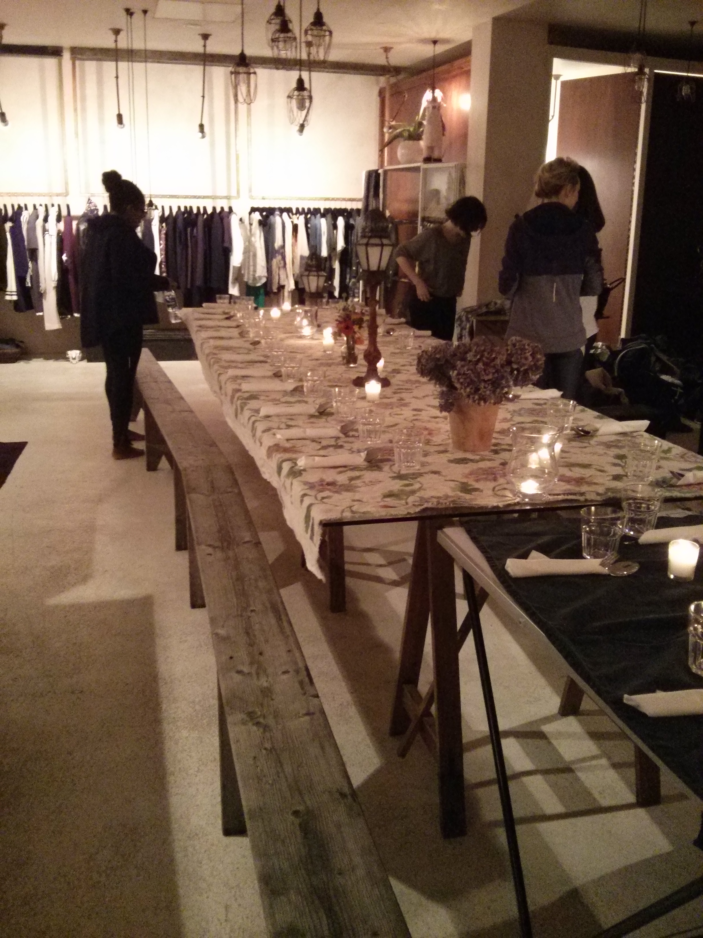 Last night we did a 1 hour Jivamukti class with the Secret Yoga Club and it was everything I love about yoga. There were two instructors, one to demonstrate the poses at the front of the room, and another walking around helping everyone adjust as necessary. The light was low and there was a musician there playing music to keep our flow on track. During the savasana we were even treated to a de-stressing neck massage with cocoa butter. HEAVEN! After we headed up stairs to the showroom and were treated to a 3 course supper club (vegan!) for the full Secret Yoga Club experience. As I sat around a table with 30 strangers, we actually had loads to talk about and I was so grateful to have had such another amazing community experience