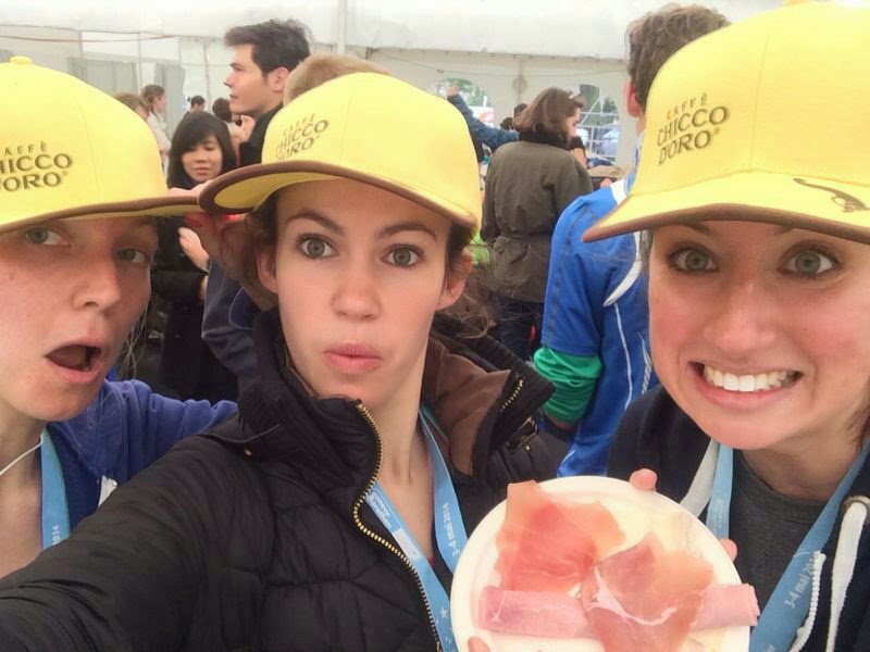 At around 9.5 miles you pass by the finish line and go into the old town zig-zagging around the streets. At this point the crowds were out and there were a lot of people cheering out our names which was so lovely. Being Geneva we ran past every designer store so there was some window shopping to do to keep us occupied. At this point a couple of girls in our group sped off to finish the last few miles strong (and get shiny new PBs!) but we found Katy and Sam (who was running his first half!) running right behind us. There was a pretty mean hill at 11.5 miles but after that it was all downhill along the lake to the finish line on Mont Blanc bridge. Again, this was a half marathon I didn’t want to end as I was feeling great, but the chocolate covered marble cake at the finish line convinced me it was a good time to stop. Medal, (another) water bottle, and cake in hand we picked up our bags and headed to a warm tent to put on some layers. The weather promised 17 degrees, but the icy wind stayed all morning so I never really warmed up over the 13.1 miles. We nipped into the sponsors tent with Ashley for an espresso and plate of meat (you know me) then we were off to the lake to watch Ashley go for the ultimate Swiss ice bath in honour of her new PB. As we were leaving we saw a bunch of buckets of ice cream all over the park. Even though we were freezing I can’t resist a Cornetto, so that was added to my post-race recovery nutrition diet. *burp*