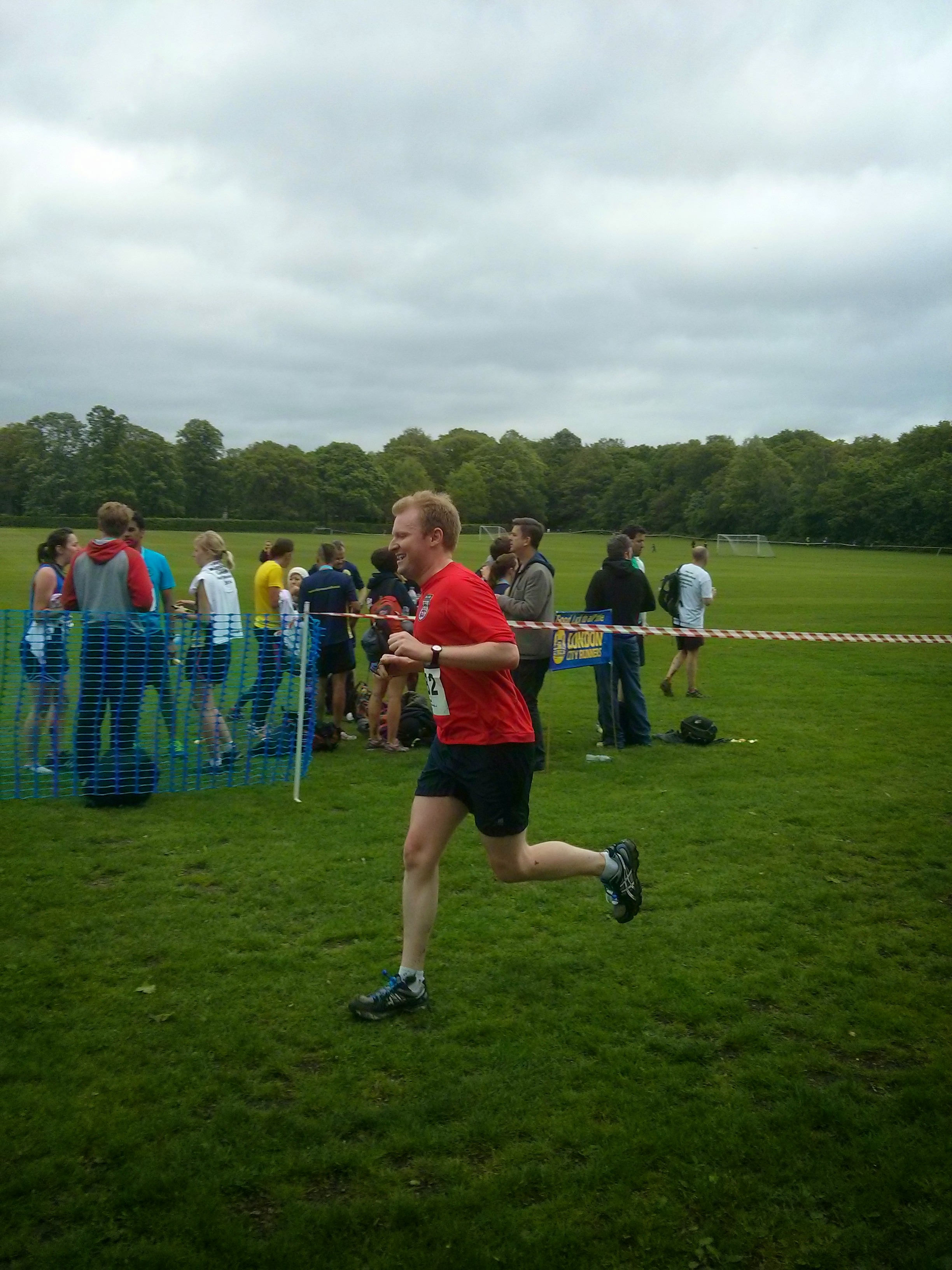 The race started right on time and had my iPod ready to go with some Ministry of Sound classic beats. The start was a bit compact and soggy on the rugby pitch but once the route opened up it took us runners up a steep first 4k incline within the Common which was a nice break from usual road races. I started to enjoy the scenery which included some energetic dogs on a Sunday morning (which meant for some quick feet and dodging). The course eventually flattened out and there were spectators to cheer us on as the drizzle continued under the trees. The next 3k went through wider trails and fields passing by the local golf course and horse riding parks. My Tribesports outfit was able to keep me cool and dry as I began to sweat as the race continued.