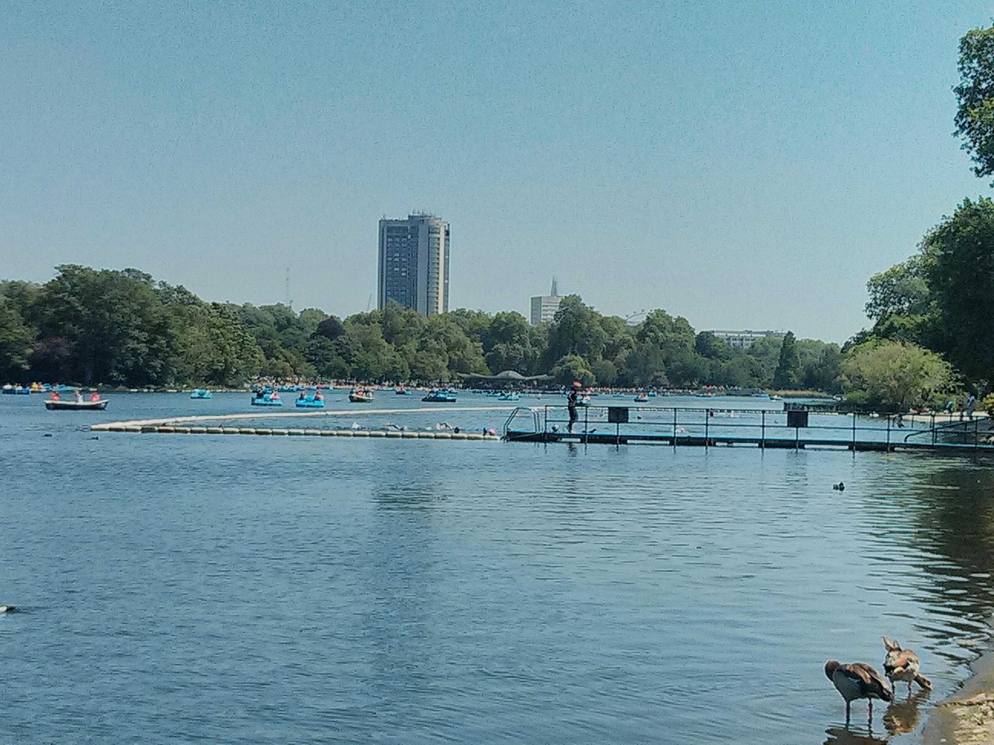 With the wetsuit back in one piece I took it to the Serpentine Lido on a Sunday afternoon for its first dip. The water was actually pushing 17* so most people were without wetsuits but I needed to practice swimming with this magical buoyancy everyone promised. I don’t know what took me so long to find the Serpentine Lido, but it’s such a nice spot in Hyde Park! As far as open water spots go it’s very friendly and forgiving with a sloping beach so you can swim where you can always touch the ground if you so want.