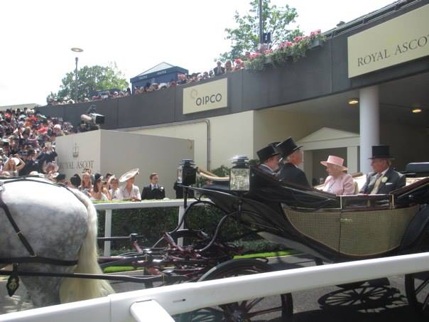 After a quick bag and outfit check (a bag of sneaky percy pigs made it in!) we were on the grounds and ready to gamble. We had arrived at about 1pm and after grabbing our race cards and putting £2 on the queen to wear blue decided to make our way into the Parade Ring for a front row seat when the Queen arrived.