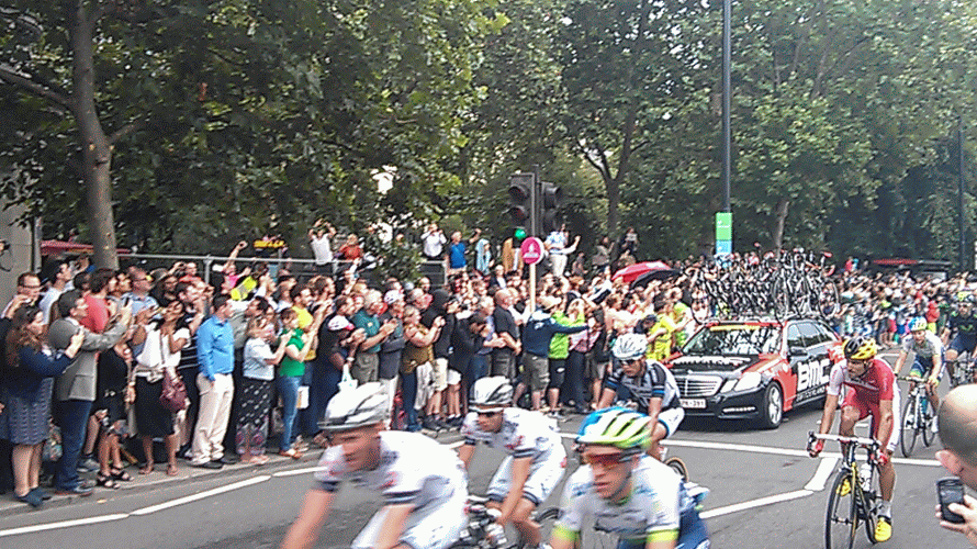 The next day we escaped our office and put on our caps to go watch le Tour race past. There was a crash right before we were standing so the peleton was a bit spaced out.