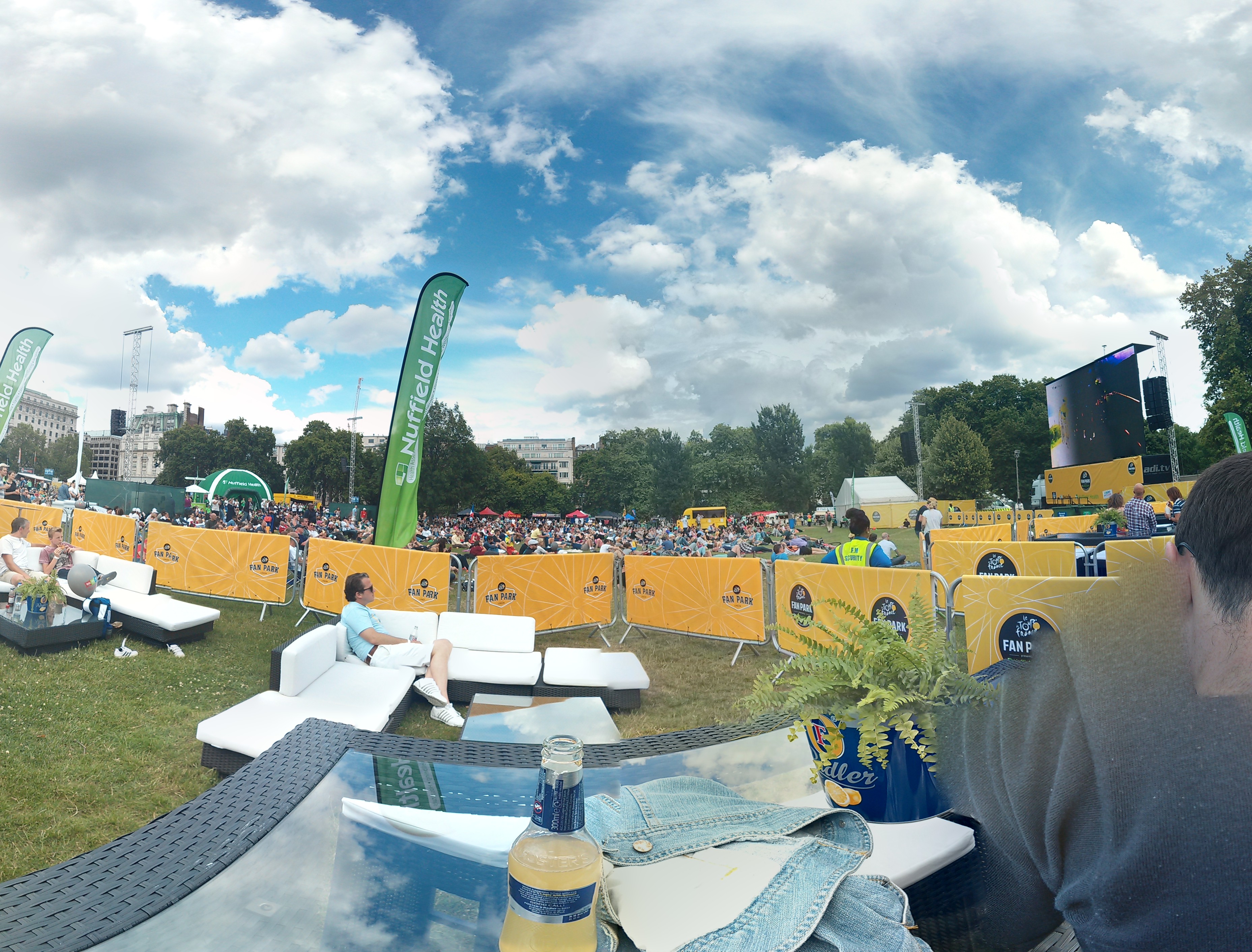 After Chelsey left, Alex and I headed to the Tour de France Fan Park in Green Park. As a TdF Fan Park Ambassador I got to go and check out what they were up to in the VIP area and all around the park. I loved the Canary Park Fan Park last year and was excited to watch the last stage in Yorkshire from Green Park.