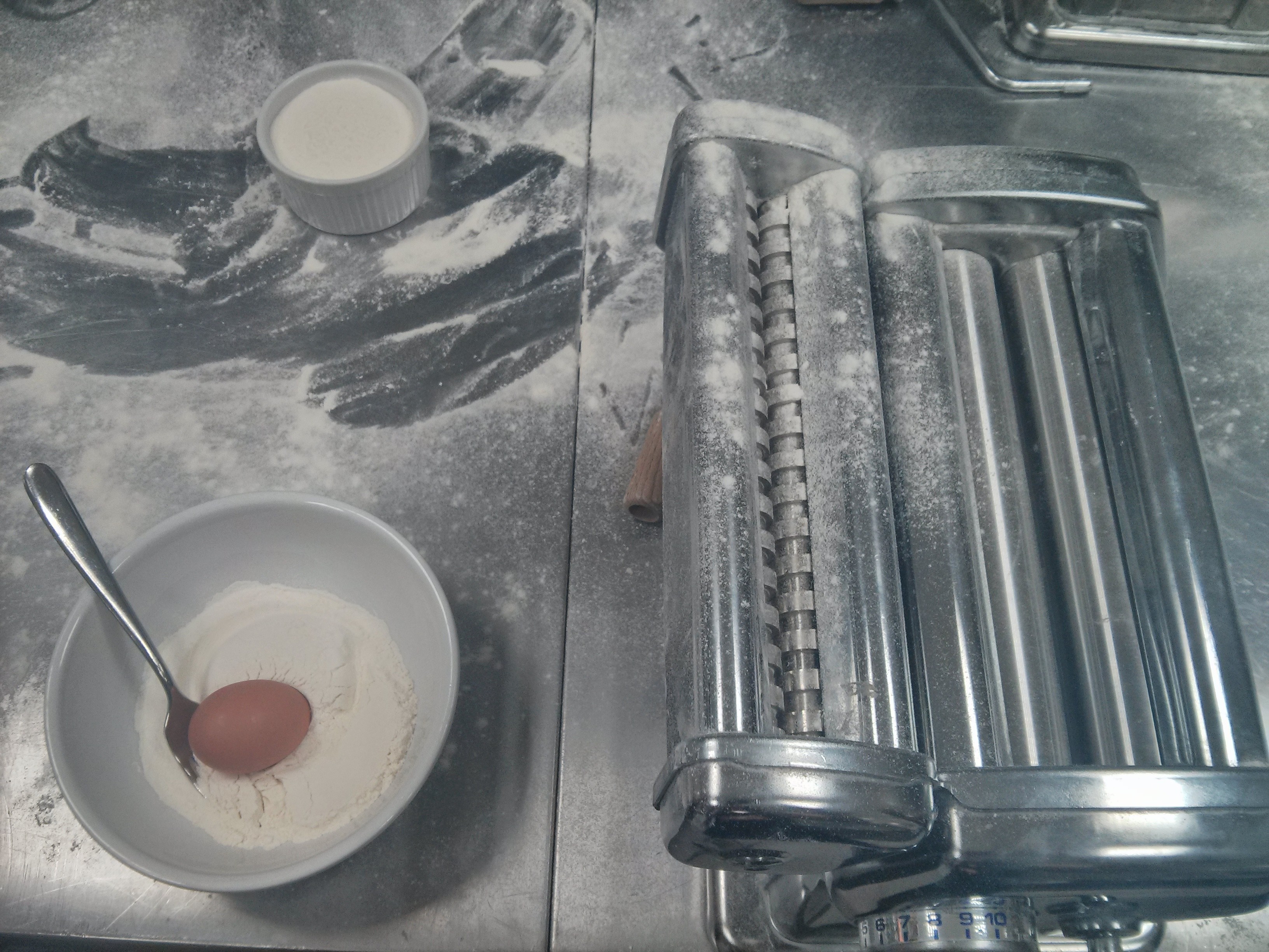 We were quickly put in aprons and taught how to make pasta. It was dead easy and really fun to use the pasta making machine thing to produce fresh tagliatelle.