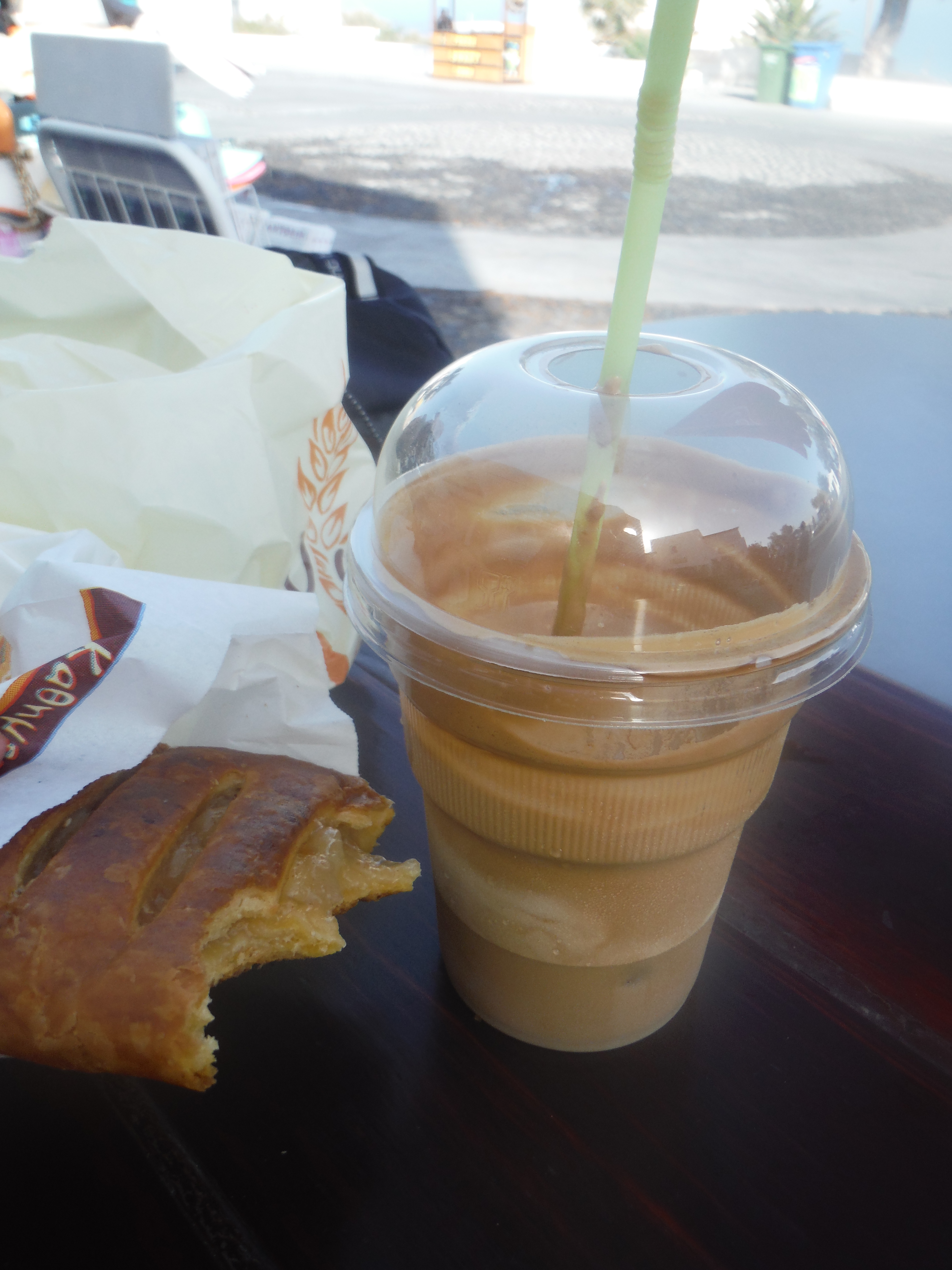 When we arrived at our hotel the staff were lovely and helpful if not shocked when we asked for the best running routes around. Over a few beers we determined it was possible to run the trail and best to run from Fira to Oia as the views were better and the hills weren’t as steep. The next morning we got up with the sun and stopped at the bakery for some fuel (apple pastry & Nescafe frappes are recommended) and caught the bus from Oia to Fira. The local busses are great on Santorini, they run every 15 minutes and I think it cost us €3.20 for the trip. The bus wasn’t too busy being early and shoulder season, but in the summer be ready to wait for a few or fight your way on.