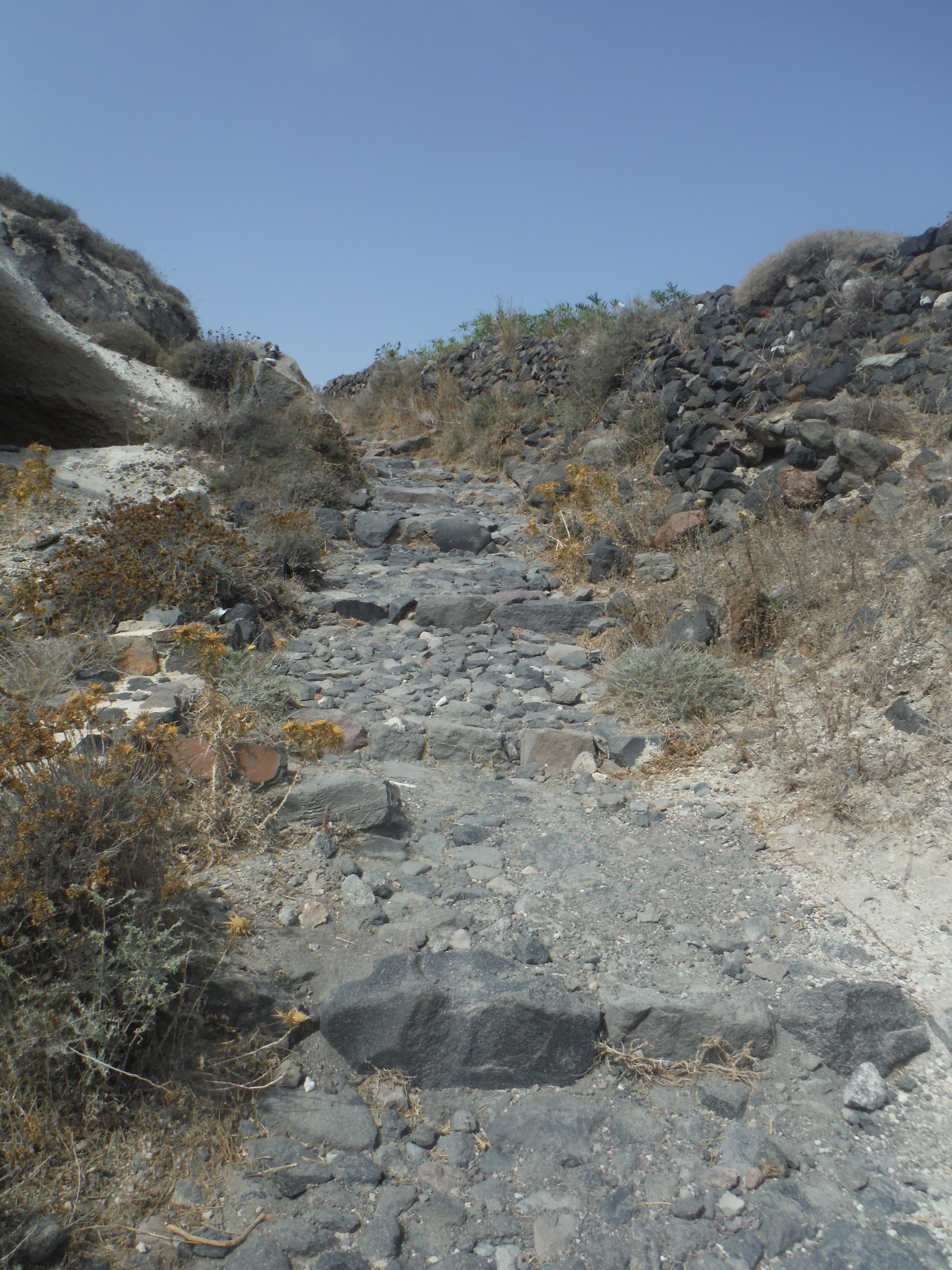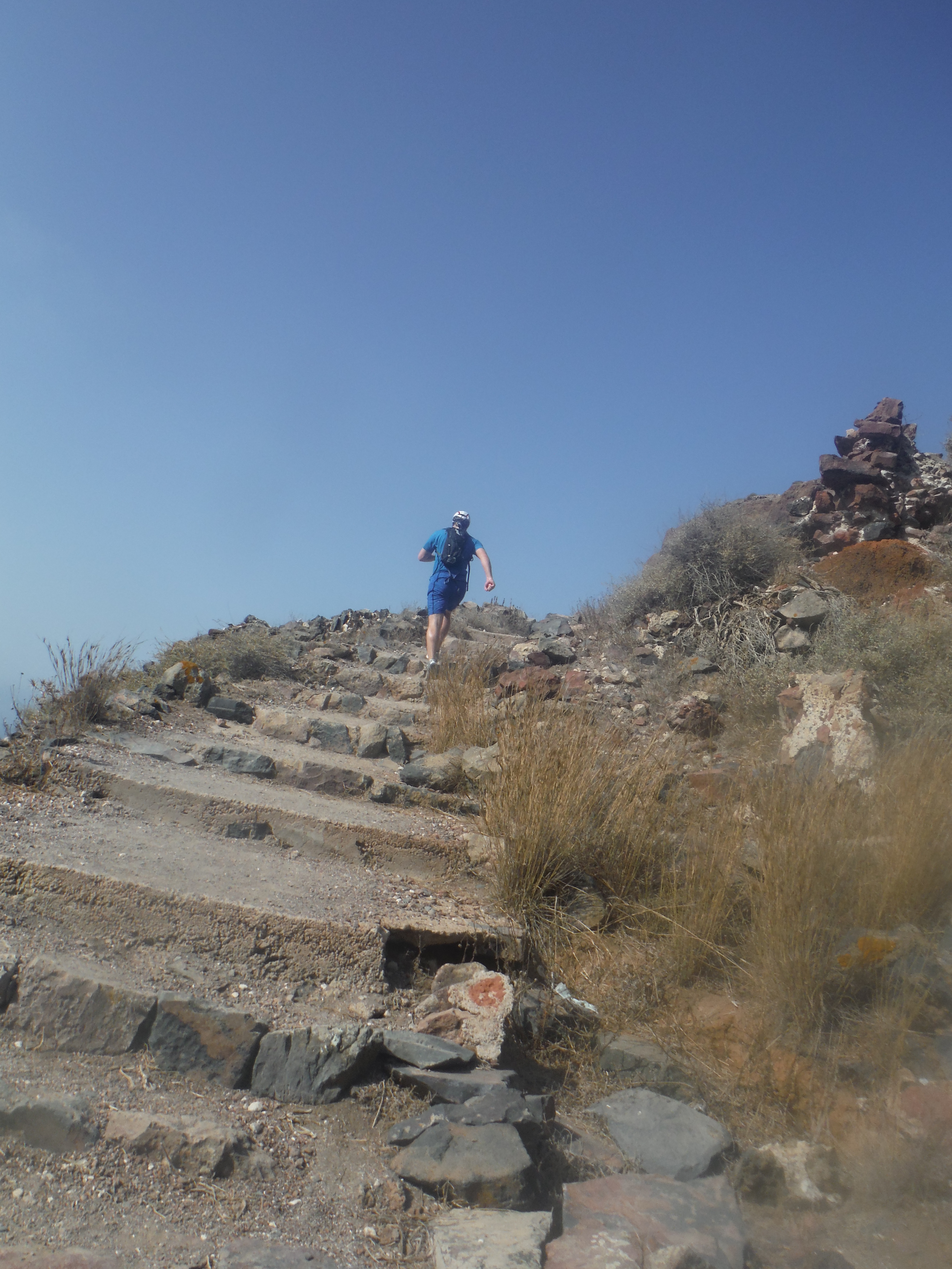 It kinda goes without saying that there are a lot of steep hills on Santorini. We weren’t trying to set any records, and if anything increase our “time on feet” during the run so did a lot of walk/run up parts of the path like this.