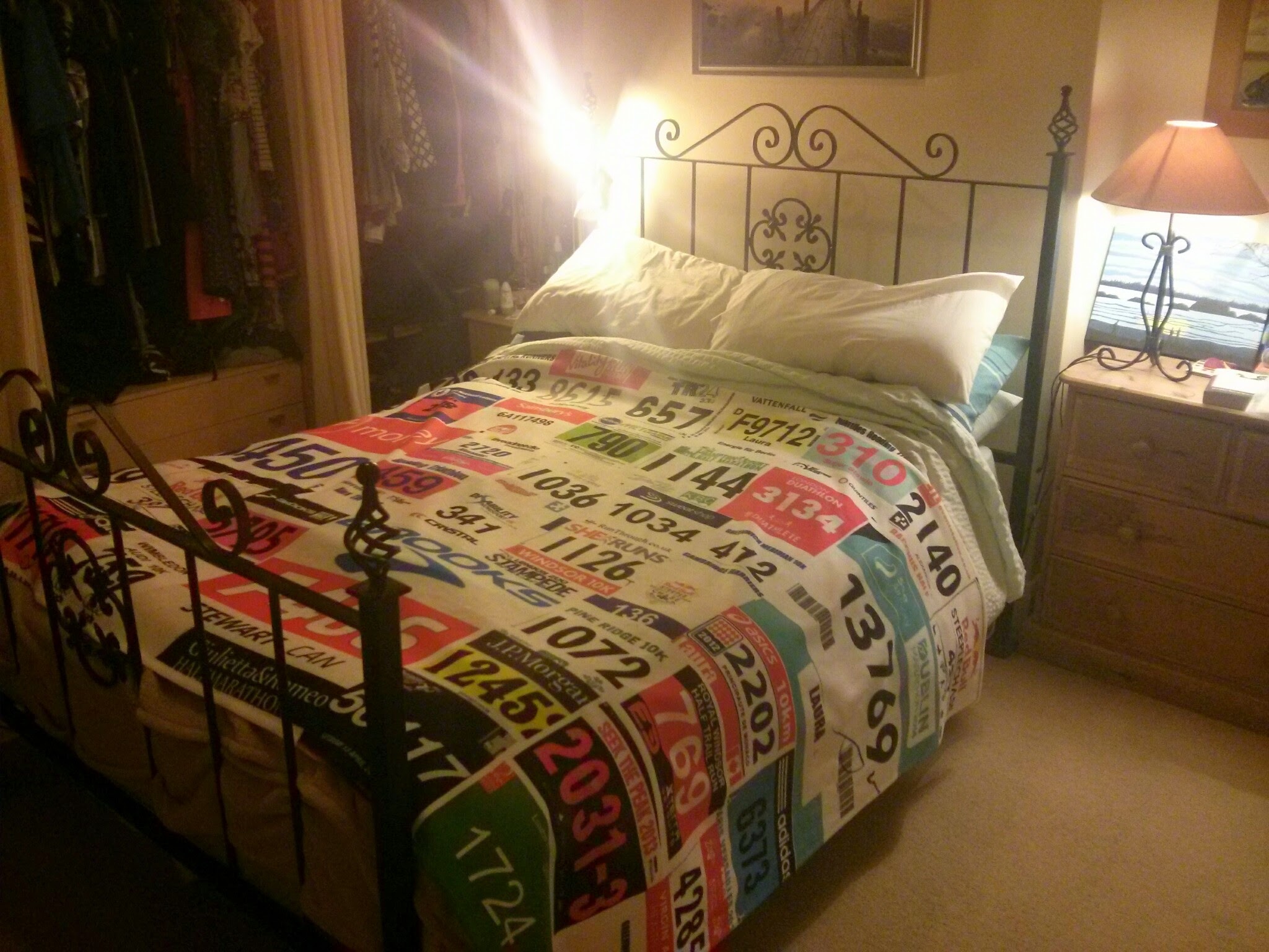 This is fabulous!!! I love it! Although unfortunately I couldn’t see Dan going for it for our bed. But I like the idea of wrapping myself in a race bib blanket at the end of races.