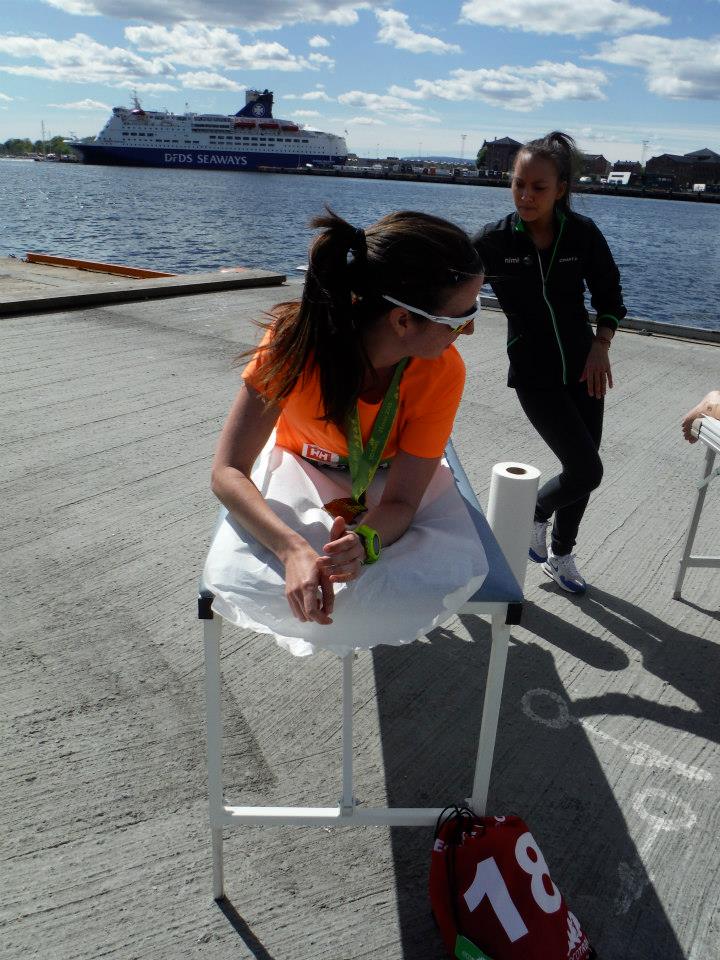 The finish line was up a small incline (typical Norwegians) and onto an island just off the Opera House, which as far as finish lines go was stunning. The whole island was a race zone with shops set up, food tents and amazing free massages. Alex and I set up camp for the afternoon and enjoyed watching the rest of the 18k finish, the 45k and even saw the first finisher of the 80k, Emmanuel Gault, who seems to win every trail ultra in Europe.