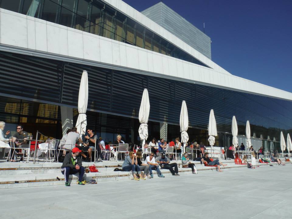 The food at the end of the race was top quality. I was so impressed with the chicken soup, coca-cola, burgers, chocolate, and sandwiches. The event could have used some beer, but being so expensive in Norway I can see why there wasn’t any. After finding a place on the island where beer was £18, we decided to pass and go off looking for a more affordable pint. Which, we surprisingly found on the steps of the Opera House terrace. A perfect sun trap and place to enjoy a practically free £8 pint.