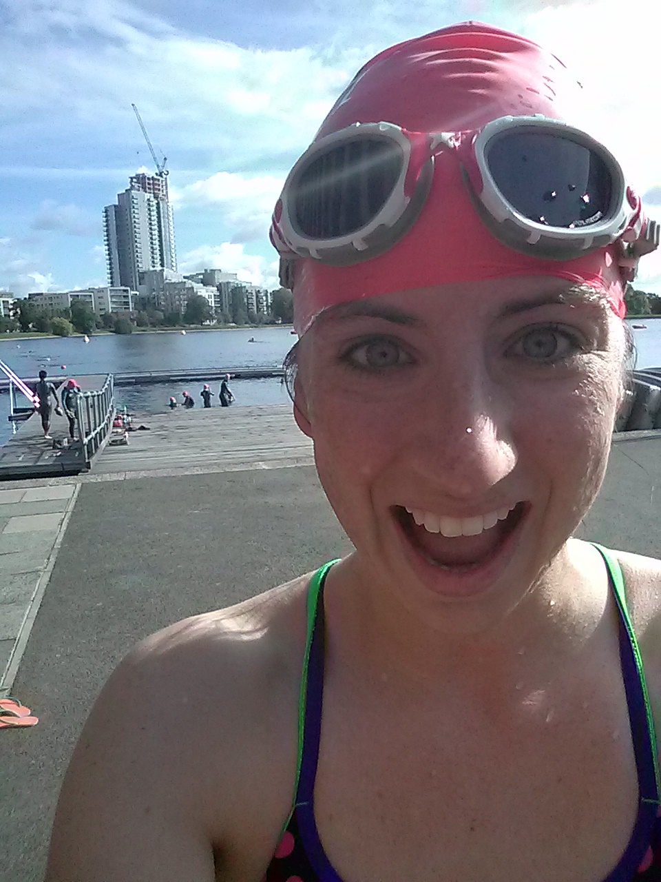Open Water swimming is an interesting one for me. I find it really tough and haven’t yet had an entirely comfortable experience. I love the challenge of it but there are some pretty tough moments any time I’m out in the waters. It’s so mental though as I know I’m wearing a buoyant wetsuit and not scared of the dark water or the weeds that float around you (so many weeds on the 400m reservoir course! Was almost like hiking through the water at some points) but there is something about the breathing and the sighting that makes it so much more difficult than pool swimming for me. That said, once I’m out I forget all the difficulties and the huge rush of adrenaline almost always results in a super swim selfie.
