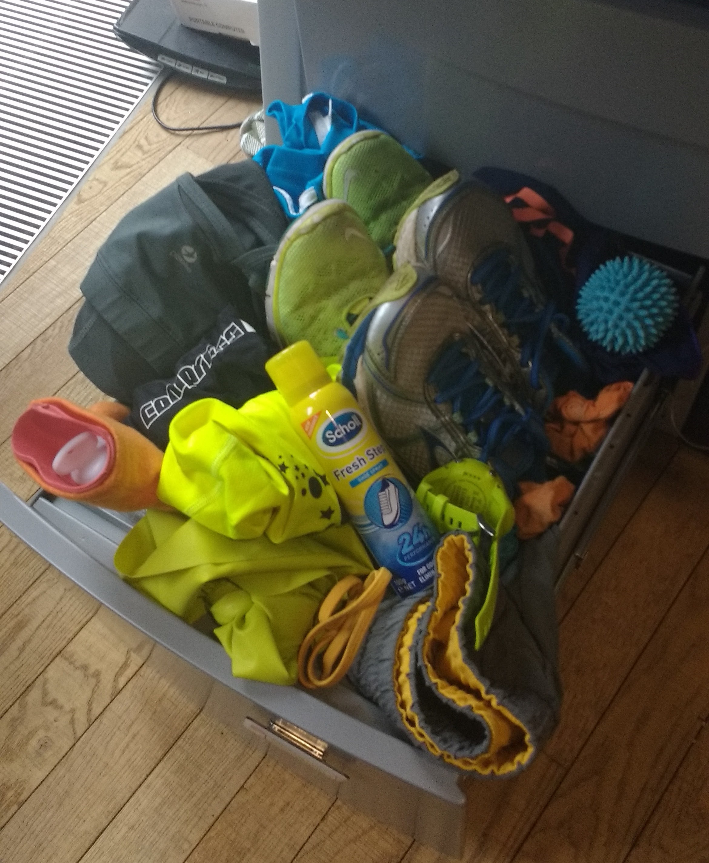 A month ago in a pre-marathon fit of organisation I cleaned up my desk and put everything nicely into a desk drawer.
