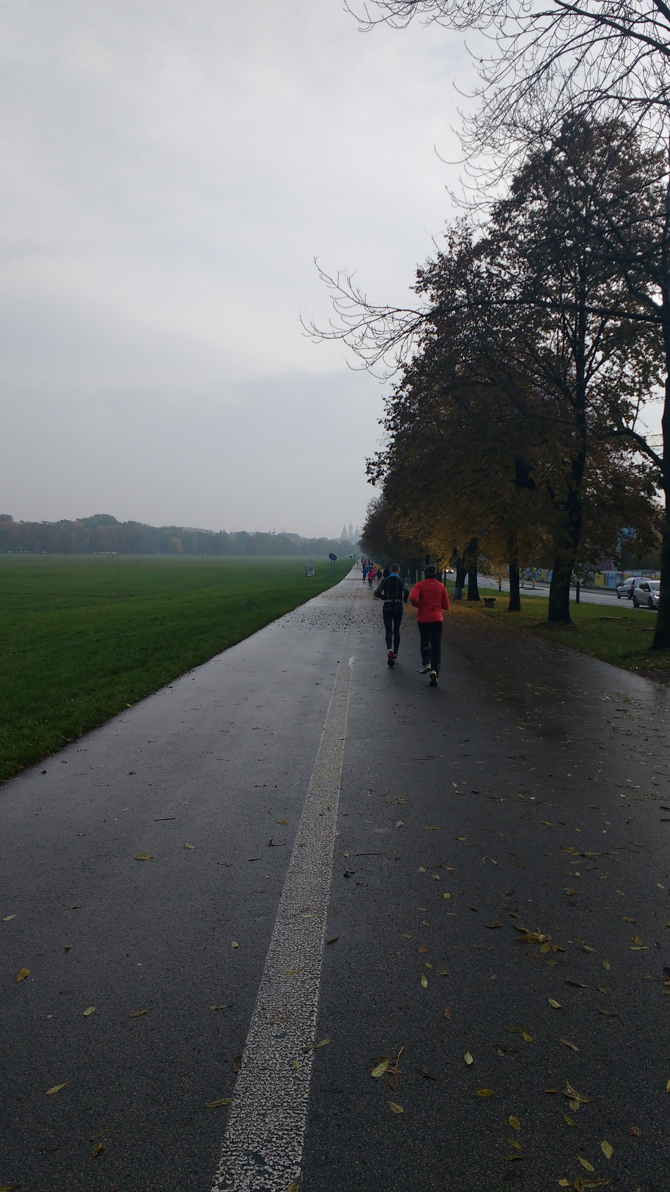There was a short introduction in Polish and then we were off. The park was a 2 mile triangle with big wide paths so the hundred or so of us had lots of room. About a mile in there was a photographer (!!) and then we passed the finish chute so at least I knew where to run back to.