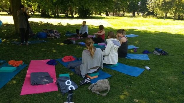 I saw a flyer for Mindful Moments pregnancy yoga classes in Finsbury Park (in the winter they’re indoors at the athletics track) on Saturdays at 11:15am but they clashed with the Triyoga classes above. These classes are closer to my flat and outdoors, so I waited to try them once my Triyoga membership was up.