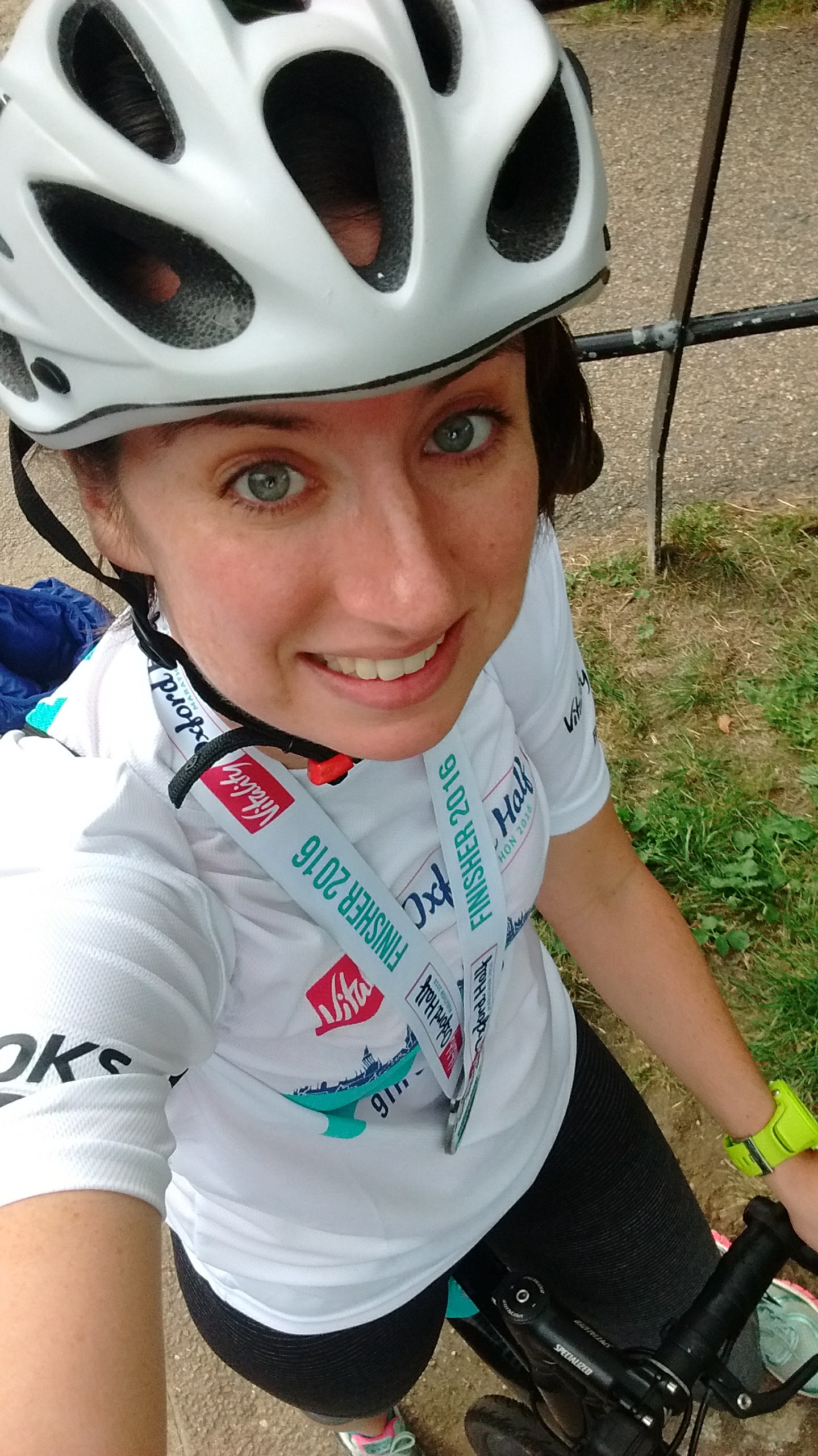 The course went through lots of lovely neighbourhoods of Oxford and surrounding villages, and then the last 2 miles were through a park. The dirt path was welcome to my pavement weary feet, but it did get quite narrow and being a solid mid-pack runner this meant that it was almost impossible to push ahead even when I felt like it. The route snaked around the park too which, at this point in the race, you couldn’t help but feel like, “Ohmygod another cut back loop to here?”